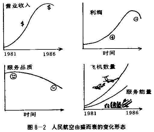 美国近年的总统中,卡特大概是埋首处理国事最深者。然而卡特总统被许多人看作是一名成效比较不彰的领导者;在他卸职的时候,支持他的人只占22%,是自从二次世界大战结束以来,包括尼克森在内,所有总统之中最低的一位。 卡特是复杂性的受害者,他渴望知道所有问题的第一手资料,这使他淹没于细节之中,对于这些细节的整体面反而没有一个清楚的视角。事实上卡特并非一特殊的个案,当今在公共部门或私人企业中,大部分的领导者都会迷失在细节中,而忽略了重大问题背后整体的症结所在,更逞论去找出真正巧妙、正确、而持续有效的策略。 虽然“见树又见林”的谚语自古就提醒世人观照全局的重要性,但是往往当我们后退,试图扩展视野时,看见的仍是许多树木。我们总是挑取个人偏爱的一、二项,然后把注意力集中在这几项的改变。 系统思考最大的好处,在于帮助我们在复杂的情况下,于各种可行的方法中,寻找有效的高杠杆解。事实上,系统思考的艺术在于看穿复杂背后引发变化的结构。因此系统思考绝非忽视复杂性,而是要把许多杂乱的片段结合成为前后一贯的“故事”,明白指出问题的症结,以及找出较持续有效的对策。今天的世界复杂性日益提高,造成许多管理者认为自己缺乏有效行动所需的资讯。我的看法是,管理者所面对的是资讯过多而非不足。我们最需要的是一种方法,去辨认何者重要,何者不重要;知道哪些事情应专注、哪此事情不必太重视;以及帮助群体或团体共同分享此种观点。 人民航空——组织创新的拓荒者 在组织创新的拓荒者中,最引人注目、但同时也最令人遗憾的是人民航空公司的兴起与衰亡。它可以说是一个学习型组织的雏型,只可惜他们未能及早接触到我们在此所介绍的系统思考技术。人民航空成立于1980年,目的在对美国东部的旅客提供价格便宜、高品质的空运服务,它在五年之中,成为全美第五大空运公司。在这段成长的过程中,人民航空建立了一个企业拓荒先锋者的声誉,甚具个人魅力的创办人布尔(Don Burr)塑造了一个令人振奋的企业哲学。布尔说:“大多数的组织相信人是坏的,你必须控制他们。但是人民航空相信人们会把工作做得很好。”这家航空公司将此一哲学实践于许多具创新性的人力资源政策,此一经营理念并在后来被其他许多公司采用;其中包括工作轮调、社团管理、全面的分股制、以及扁平式的组织(整个公司只有四个薪级)。然而尽管它早期的成功非常引人注目,到了1986年9月,人民航空被得克萨斯州的一家航空公司接手的时候,单是当年前6个月就亏损1亿3千3百万美元。